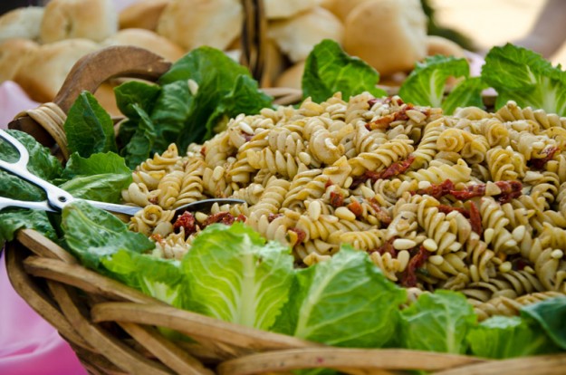 Pasta Salad with Sun Dried Tomatoes, Pinenuts and Fresh Basil tossed with Balsamic Dressing