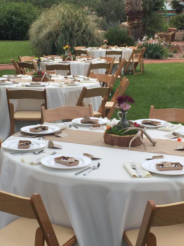 Rentals – Fruit Wood Chairs, Linens and Formal Dishware