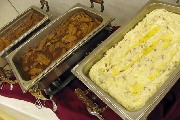 Sliced Beef Brisket and Garlic Mashed New Red Potatoes