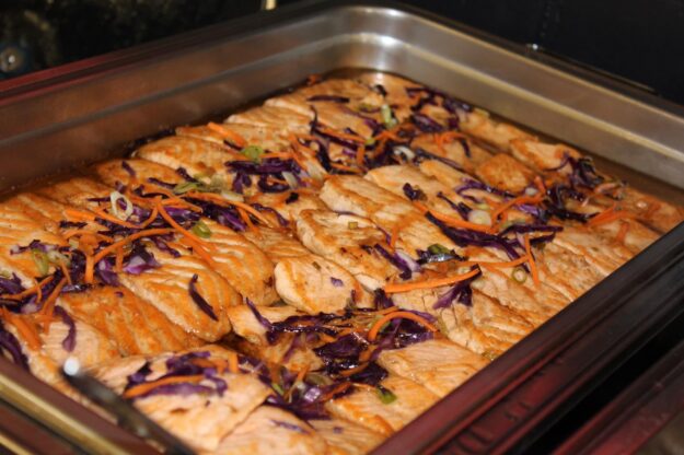 Fresh Baked Shallot Herb Rolls, Sweet Shredded Pork and Garlic & Rosemary Chicken Breasts
